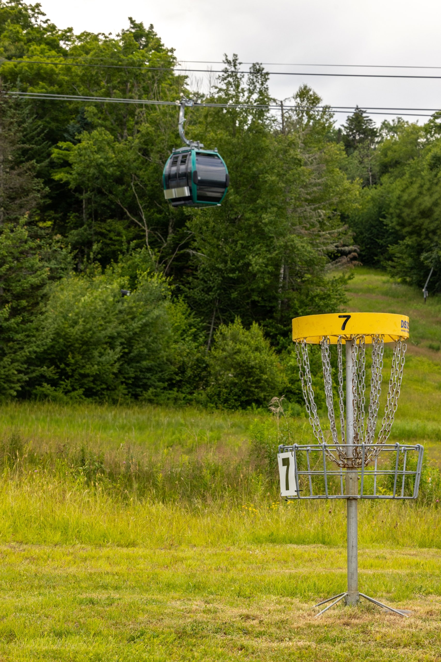 A hiking trail surrounded by trees at Bretton Woods in Summer.
